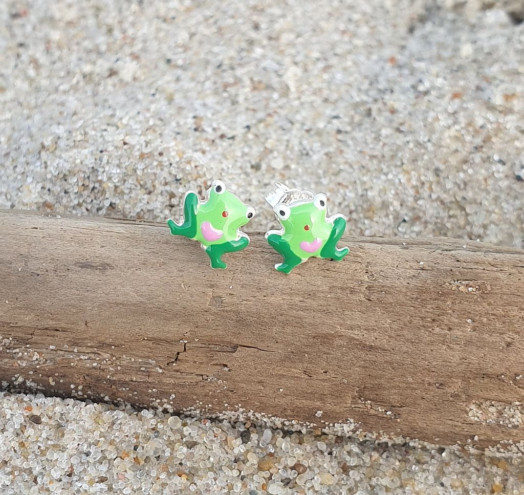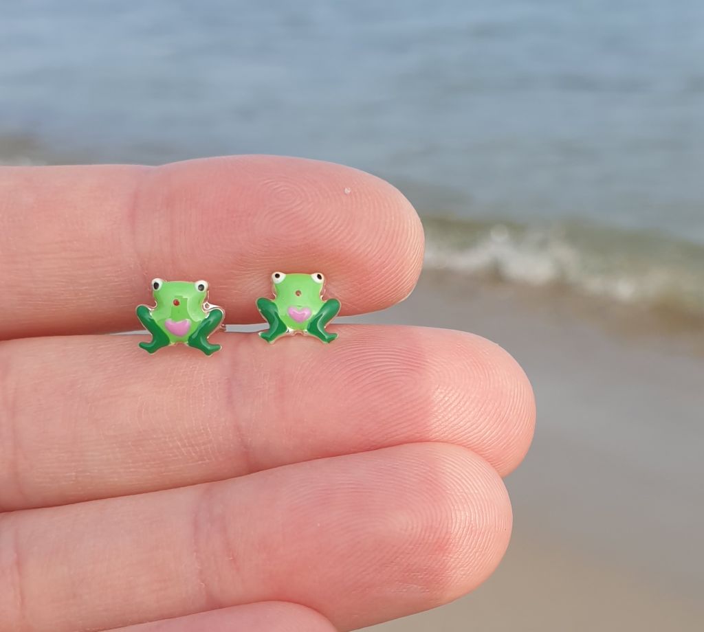 Kolczyki Żabki - przebitki - srebro 925 emaliowane