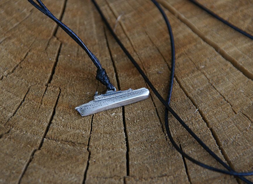 Statek wykonany jest ze srebra najwyższej próby 925 i poddany został oksydacji, czernieniu, dla podkreślenia wszelkich detali. Statek zawieszony jest na bawełnianym powlekanym sznurku o wysokiej odporności.