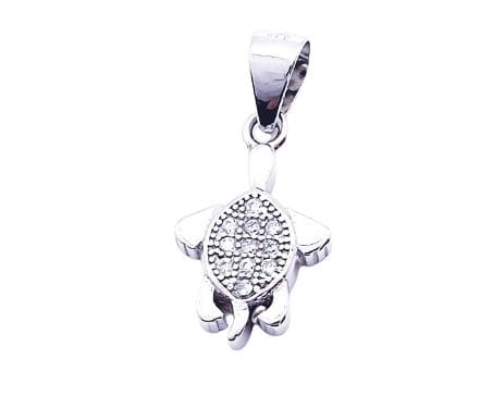 Mała, urocza ale efektowna zawieszka z żółwiem ozdobionym cyrkoniami. Wspaniały prezent dla fanek podwodnego życia i nurkowania.